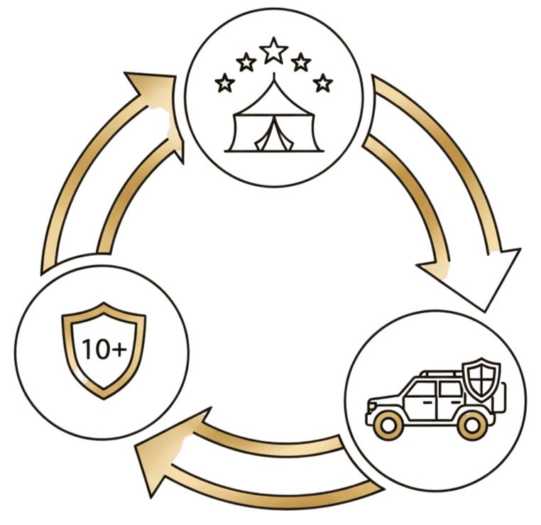 Choose your preferred package and book instantly with free pickup & drop-off, 5-star camp experience, and safe luxury 4x4 vehicles.